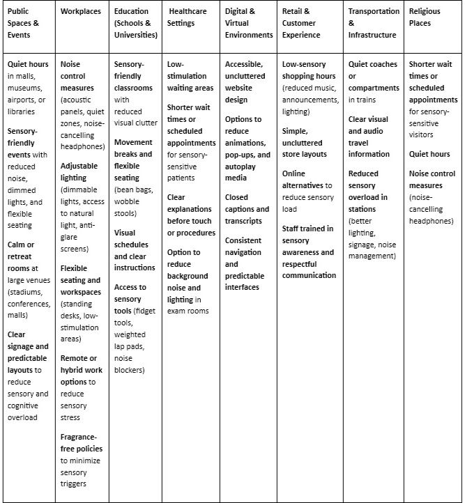 Like accessibility features, sensory inclusion has to be implemented under the ambit of Universal Design